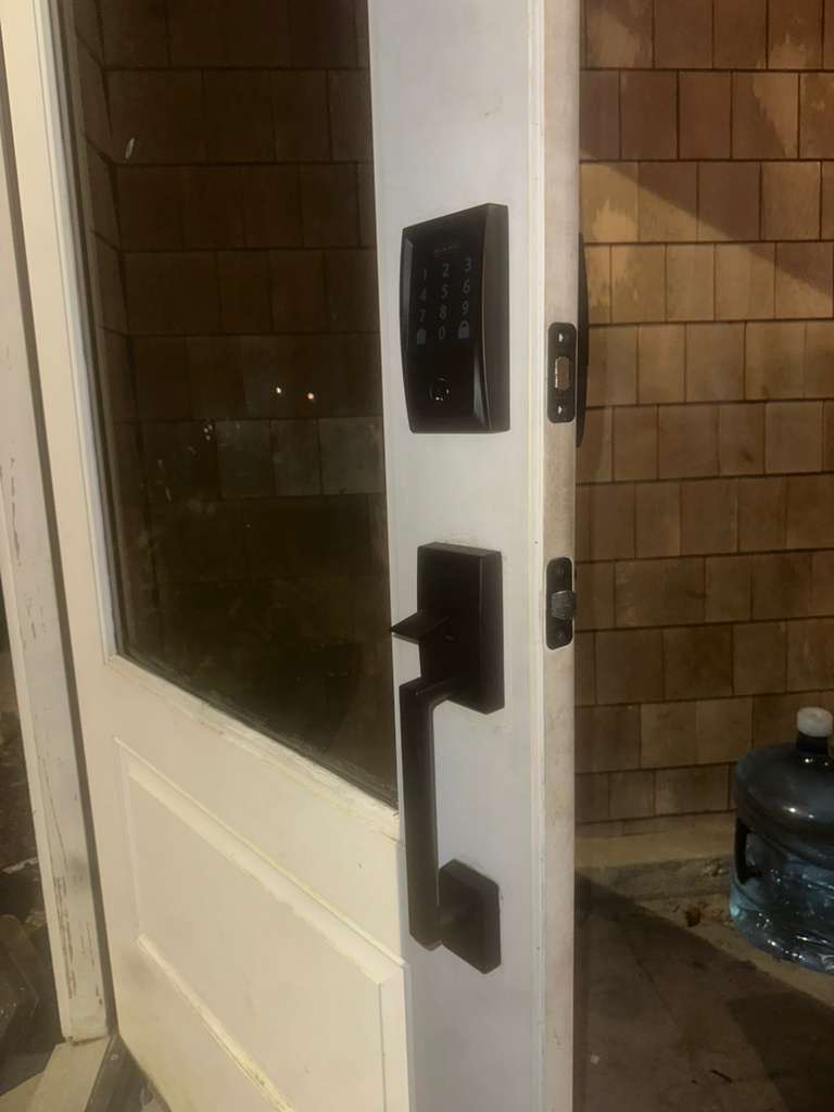 Residential Keypad Installation Warwick, RIDetailsClient Residential ClientCompleted 10/18/2025Timeframe Same Day ServiceLocation Warwick , riCategoryResidentialShare this page... Back To GalleryNew Schlage electronic key pad and handle set installed by Top Lock and Garage. Project PhotosAfter Photos